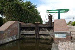 In de zuidelijke sluiswand is een gedenksteen ingemetseld waarop de volgende tekst staat: “De eerste steenen gelegd/ 29 Augustus 1902 door/ het Bestuur der Banne Jisp/ (namen van de leden van het bestuur)/”